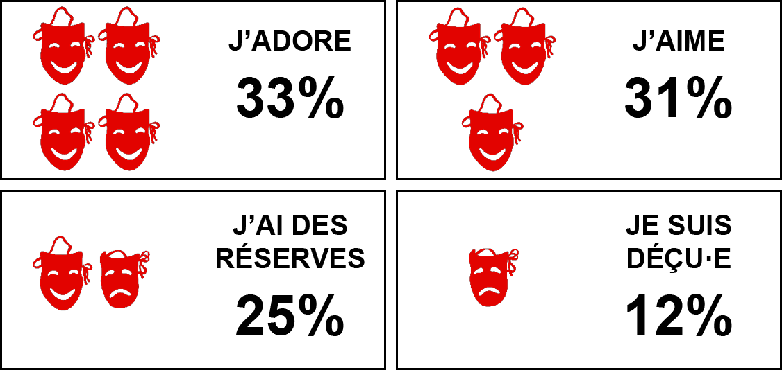 Voici les résultats de notre sondage éclair d'appréciation mené auprès des spectatrices et spectateurs de notre dernière production, Macbeth de Shakespeare, dans une traduction en québécois Michel Garneau et une mise en scène Robert Lepage.